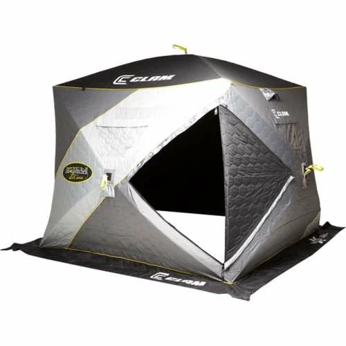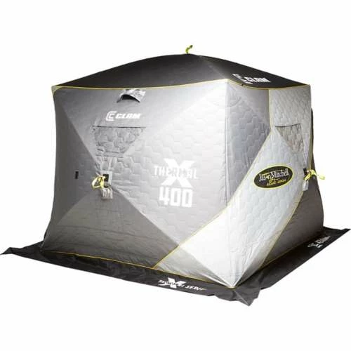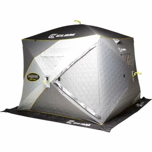 Stay comfortable out on the ice this year with the Clam Jason Mitchell X-400 Thermal Hub Shelter. This X-400 thermal hub shelter offers 90 grams of insulation per square meter to keep you warm all day long. A fishable area of up to 64 square feet offers ample room for chairs, multiple anglers, and supplies such as heaters. The full thermal trap technology stemming from the black roofing adds to the internal heat retainment from sunlight. Super tough 900 total denier fabric is tough and helps to hold off cold winter wind and snow. Ice fish in comfort this year with the Clam Jason Mitchell X-400 Thermal Hub Shelter.