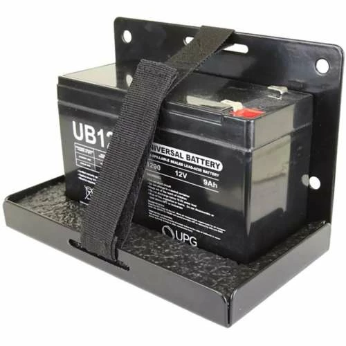 The Clamยฎ Battery Bracket is a convenient way to stay organized in the ice house. This battery bracket simply mounts to any ice shelter sled to keep your 7-amp, 8-amp, 9-amp, or 12-volt flasher battery safe and easily accessible. For better security, this battery bracket features a Velcro strap and includes the necessary hardware for installation. Keep your flasher battery safe with the Clamยฎ Battery Bracket.ย